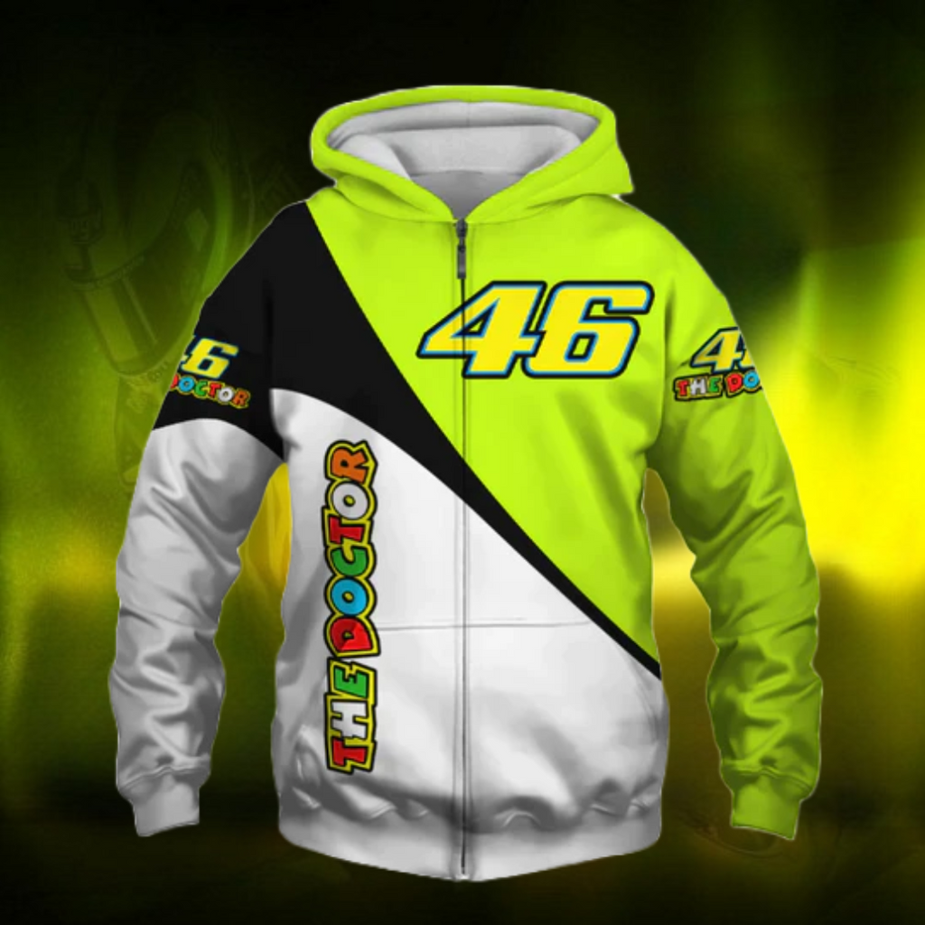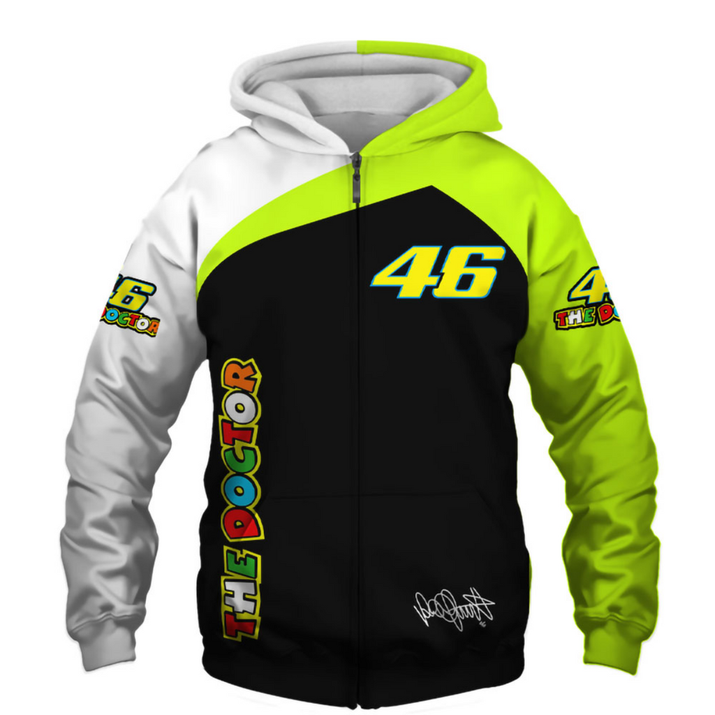 Jaqueta Speed The Doctor 46 feita com material de alta qualidade e tecnologia. Possui tecido leve, confortável e resistente. Disponível em diversas cores com estampas customizadadas.